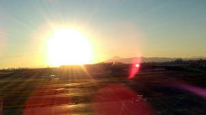 滑走路の上に注ぎ込む夕日なのだ。